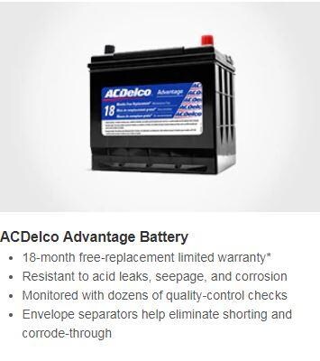 We can replace most ACDelco batteries. We'll install the new battery for you, clean the terminals to prevent corrosion, and tighten the cables to ensure a proper electrical connection. When you buy a new battery from us, you get up to 42 months' free-replacement limited warranty. We also offer an extensive selection of batteries from other manufacturers at excellent prices.